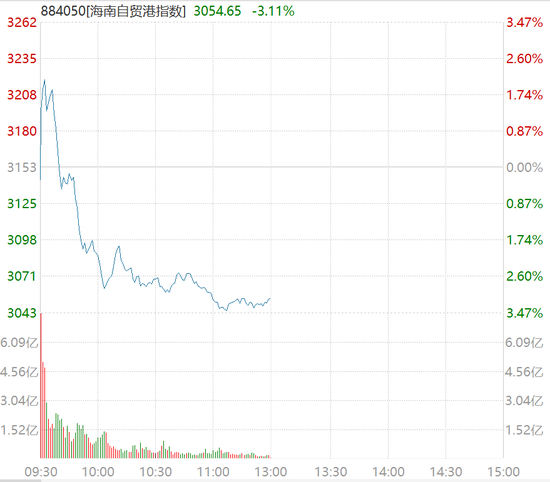 11月24日上午,海南自贸港板块盘初走高,随后跳水走低。